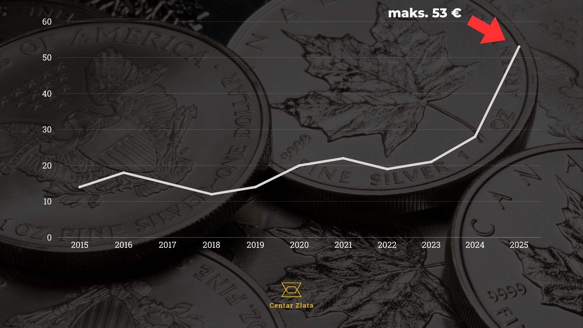 Prema procjenama Centra Zlata, u 2025. Hrvati su kupili do 70 milijuna eura fizičkog investicijskog srebra, što znači da se ulaganje u ovaj plemeniti metal približno udvostručilo u odnosu na godinu ranije. Ovo je velikim dijelom rezultat vrtoglavog rasta cijene koji očigledno nije promakao domaćim ulagačima.