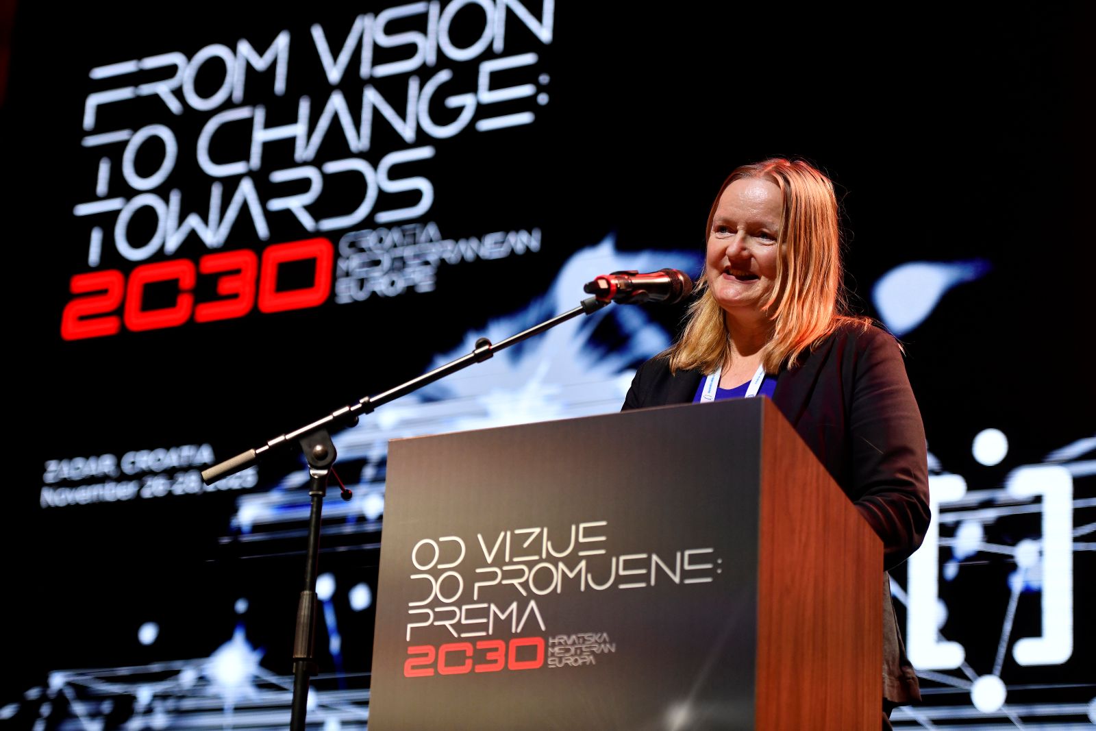 Svoja izlaganja održali su ugledni međunarodni stručnjaci: mr.sc. Marija Pejčinović Burić, bivša glavna tajnica Vijeća Europe, govorila je o geopolitičkom kontekstu održivog razvoja u Europi; dr. Colin Haberton, osnivač Relatomics Foundation iz Južnoafričke Republike, usmjerio je raspravu na pokretanje pozitivnih društvenih i okolišnih promjena; Adriano Bisello iz Eurac Research-a iz Bolzana govorio je o klimatski otpornim zajednicama i pametnim gradovima; prof. Stephanie Fischer s American University-ja predstavila je strategije društveno odgovornog poslovanja.