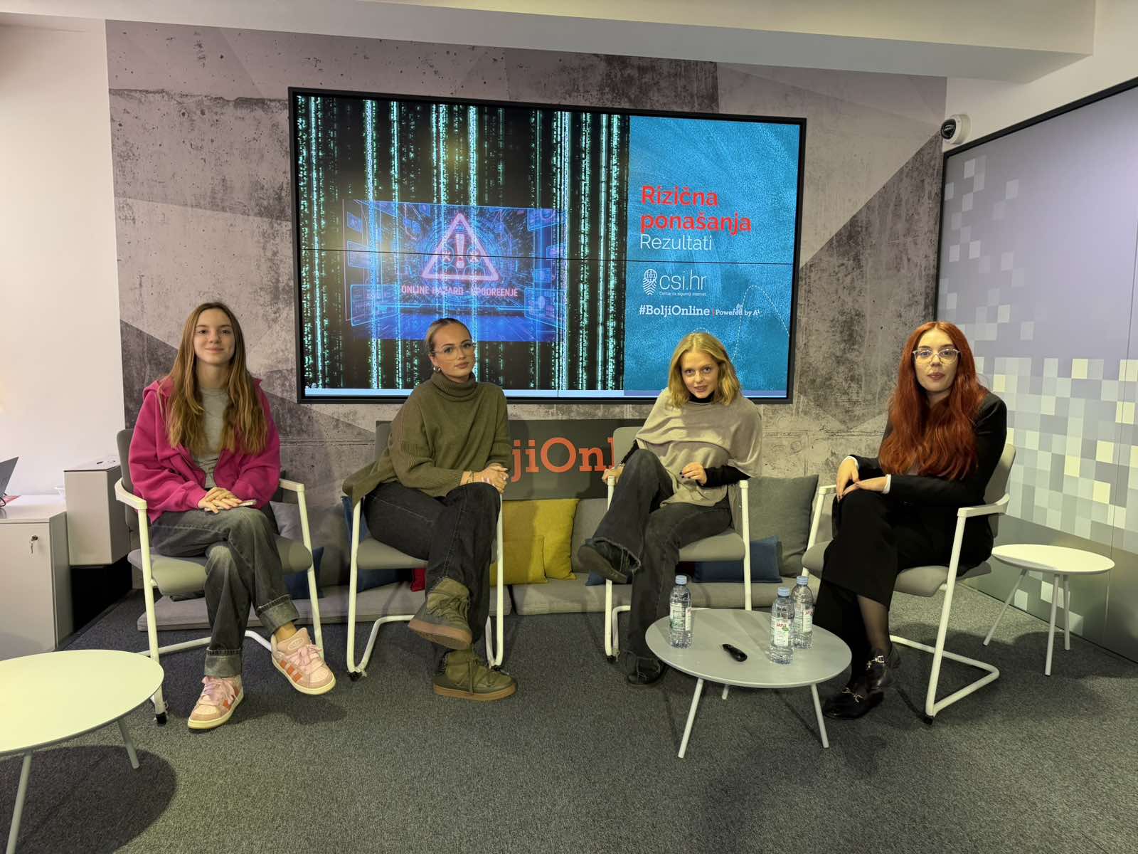Predstavljanje rezultata istraživanja o vršnjačkom nasilju završeno je panel raspravom s tri učenice osnovne i srednje škole, Aurom, Leom i Enom koje su s prisutnima podijelile svoja iskustva i razmišljanja kada govorimo rizicima korištenja interneta.
