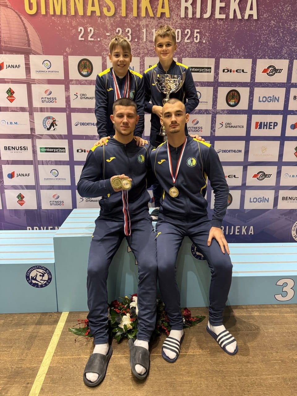 U univerzalnom programu, u konkurenciji mlađih dječaka, Ivano Dakić osvojio je zlatne medalje na preskoku i preči te srebra na parteru i konju s hvataljkama. Dorian Adamček u istoj je konkurenciji uzeo srebro na ručama i broncu na preskoku, dok je Roko Babić osvojio broncu na ručama.