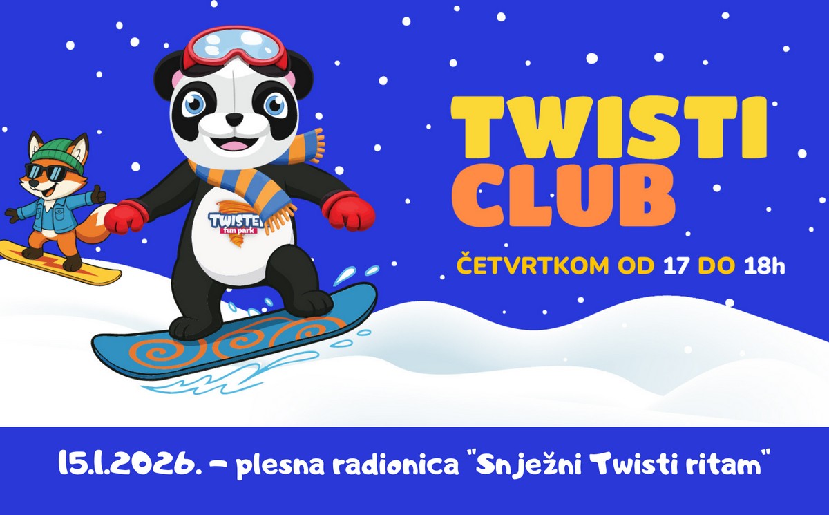 Ovog četvrtka, 15. siječnja 2026., na rasporedu je plesna radionica „Snježni Twisti ritam“. Mališani će zaplesati uz zimske pjesmice, sudjelovati u mini plesnim izazovima i igrama, dok će se Twisti, kao glavni zabavljač, pobrinuti da osmijeha i dobre energije ne nedostaje.