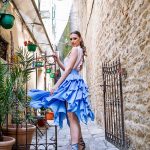 Le Ciel u svijetloplavoj varijanti razvija se u suprotnom smjeru, s otvorenim leđima, čime se naglašava oslobađanje i prostornost forme. Sanjiva i romantična, ova haljina podsjeća na peruniku u punom cvatu, onu nježnih latica, ali neporecive snage i prisutnosti.