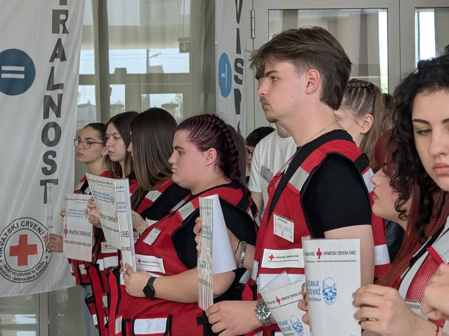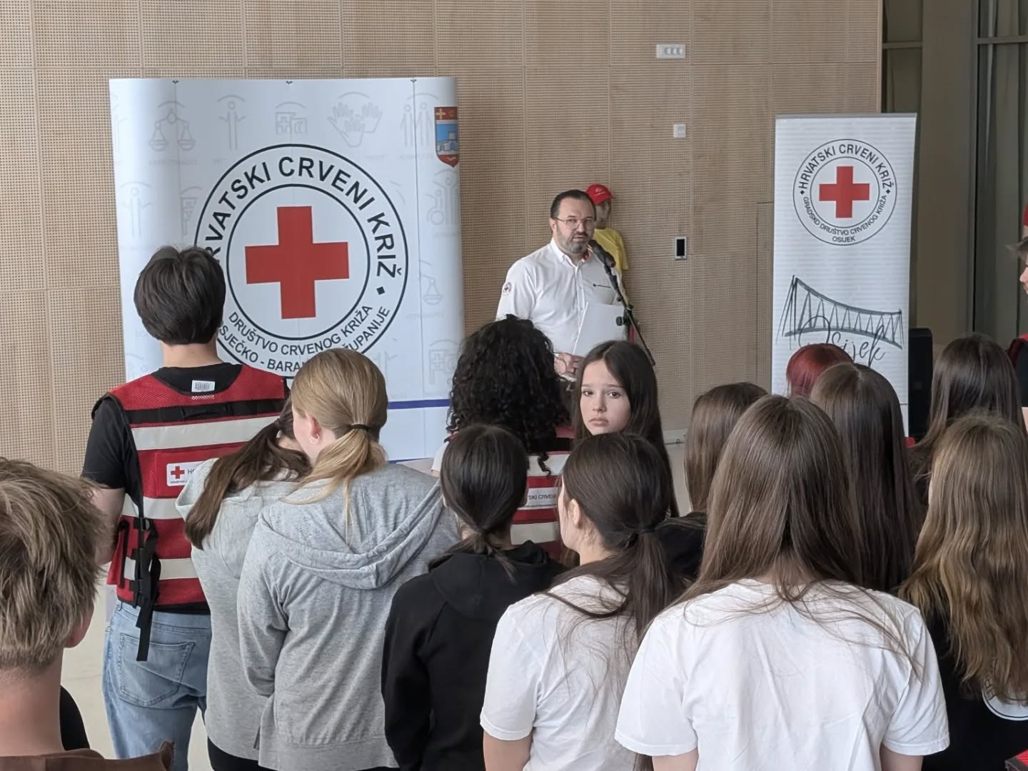 u subotu 18. travnja 2026. godine u I. gimnaziji Osijek, Ulica Josipa Jurja Strossmayera 128B u Osijeku održano je 15. međužupanijsko natjecanje mladih Hrvatskog Crvenog križa. Natjecanje u kojemu je sudjelovalo 8 ekipa u kategoriji podmlatka (osnovne škole) i 8 ekipa u kategoriji mladih (srednje škole) koje su predstavljala gradska i općinsko društva Hrvatskog Crvenog križa: Beli Manastir, Darda, Donji Miholjac, Đakovo, Našice, Orahovica, Osijek, Slatina, Valpovo i Virovitica s područja Osječko-baranjske i Virovitičko-podravske županije, organizirao je Hrvatski Crveni križ Društvo Crvenog križa Osječko-baranjske županije, a domaćin natjecanja bio je Hrvatski Crveni križ Gradsko društvo Crvenog križa Osijek.