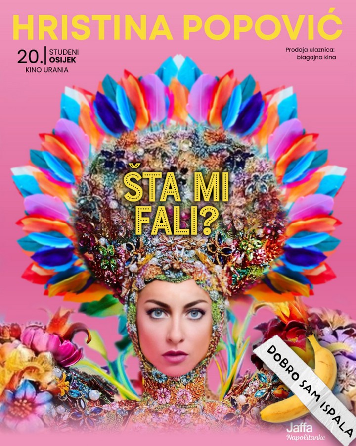 Druga izvedba comedy show-a „Dobro sam ispala, šta mi fali“ održat će se u Osijeku kina Urania, 20.11. 2025. s početkom u 19 sati.