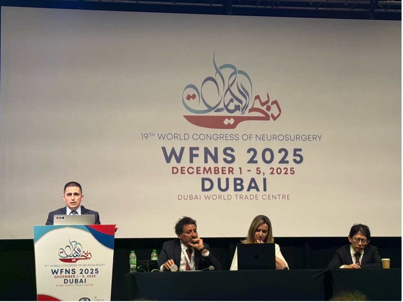 Svjetski neurokirurški kongres 2025. Doc. prim. dr. sc. Fadi Almahariq (Hrvatska) Doc dr. sc. Almir Džurlić (BiH) Doc. dr. sc. Mirza Pojskić (Njemačka)