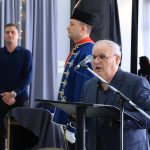 Sve nazočne pozdravio je Miroslav Čakalić, počasni poglavar i osnivač obnovljenog Hrvatskog sokola Osječko-baranjske županije nakon Domovinskog rata, koji se prisjetio prvih postrojavanja Hrvatskog sokola u Osijeku.