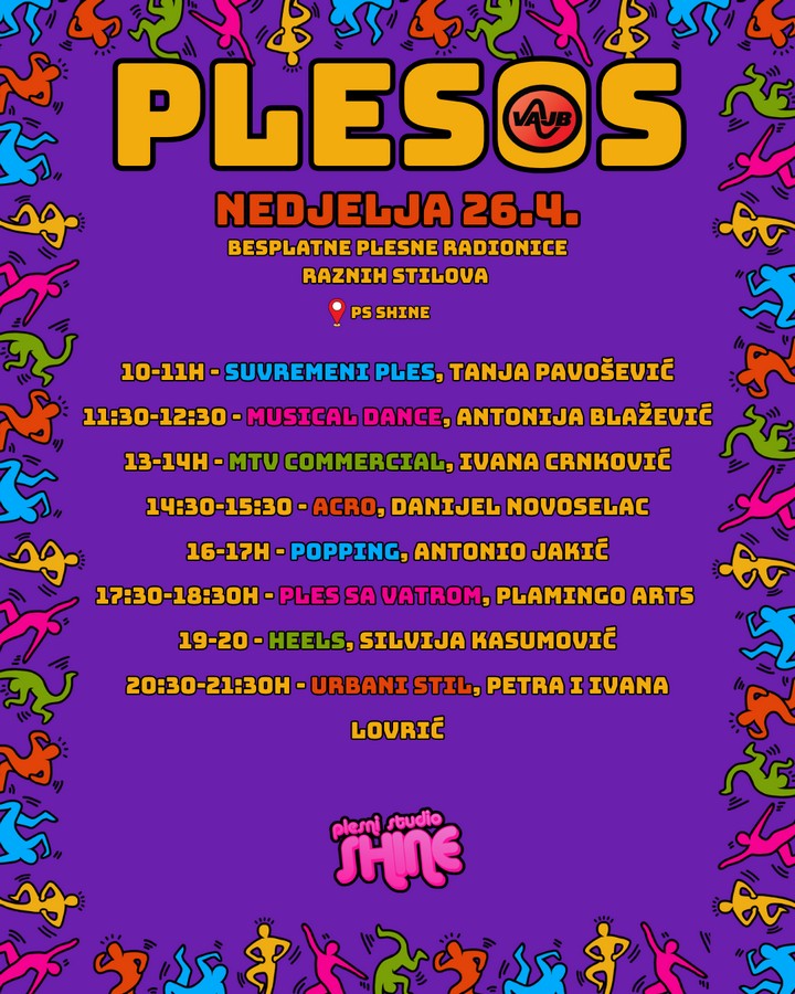 PlesOS festival će se održati od subote 25. do srijede 29. travnja 2026. godine u organizaciji Plesnog studija Shine i Vajb kolektiva kojeg čine plesači Karla Mitrović i Josip Bišćan.