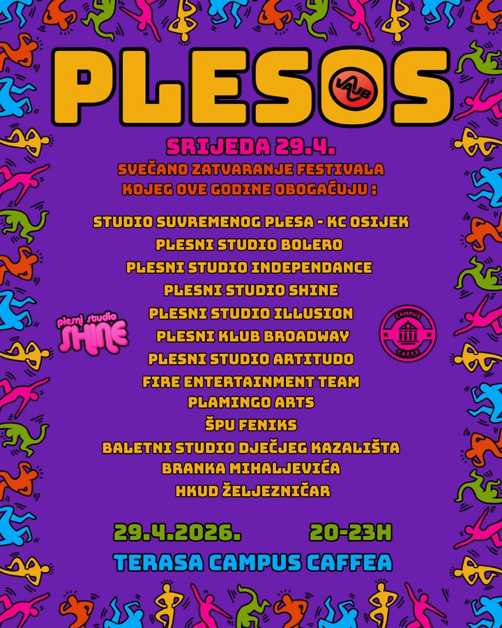 Već treću godinu zaredom, Vajb kolektiv pretvara terasu Campus Caffea u pravu plesnu pozornicu i okuplja osječke plesače, plesne studije, kulturno-umjetnička društva i sve zaljubljenike u pokret kako bi zajedno proslavili Svjetski dan plesa!