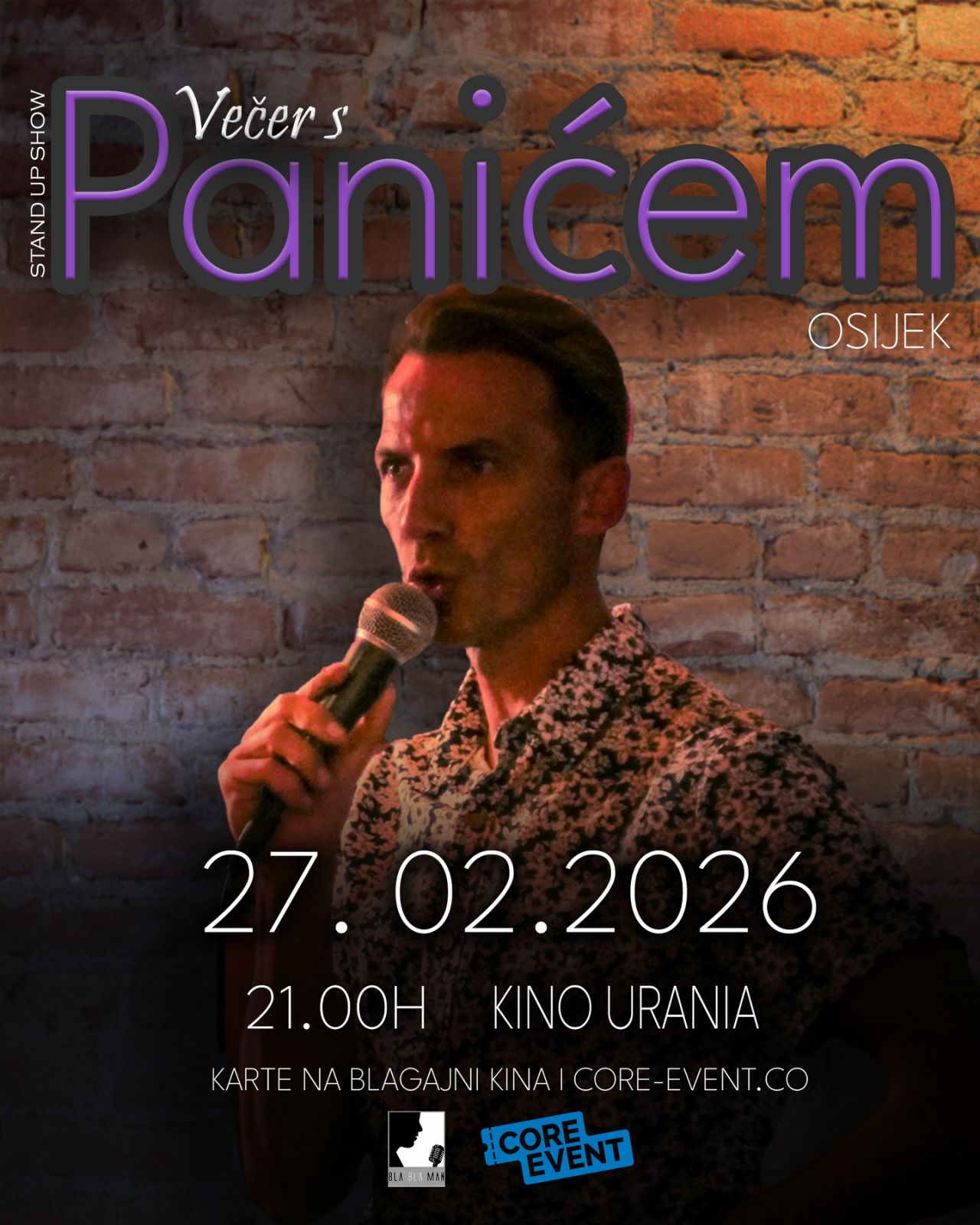 Ivan Panić po prvi put dolazi u Kino Urania sa stand-upom Večer s Panićem — večeri u kojoj se stvarne životne situacije pretvaraju u urnebesne anegdote. Iskreno, dinamično i bez filtera.