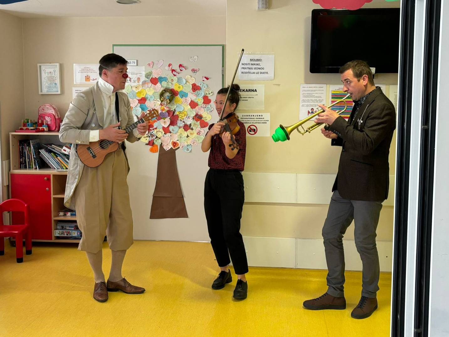 Povodom Svjetskog dana zdravlja, koji se obilježava 7. travnja, CRVENI NOSOVI organizirali su jedinstveni „Mali Gala koncert“ na dječjim hemato-onkološkim odjelima bolnica u Zagrebu, Rijeci, Osijeku i Splitu, donoseći radost i glazbu djeci koja se bore s teškim bolestima.