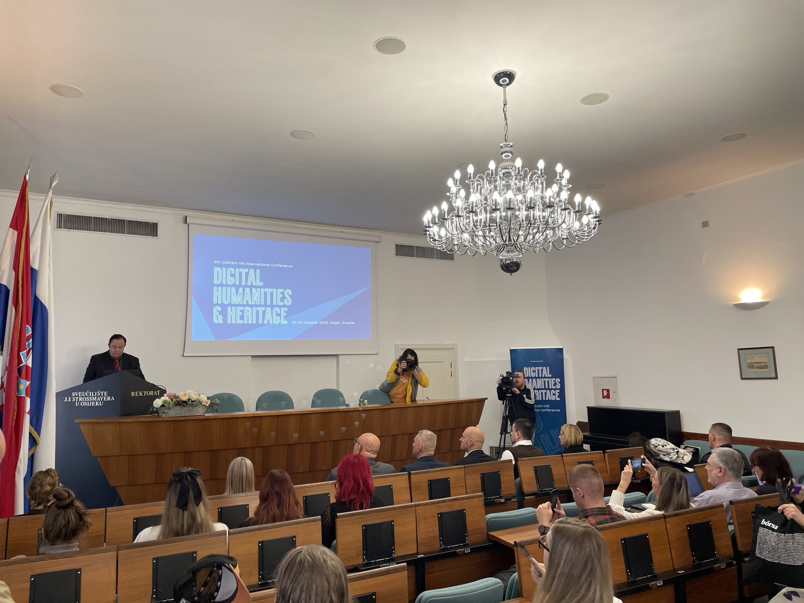 U osječkom Rektoratu svečano je otvorena 5. međunarodna konferencija konzorcija DARIAH-HR „Digitalna humanistika i baština“ u organizaciji Instituta za etnologiju i folkloristiku/ DARIAH-HR, Akademije za umjetnost i kulturu u Osijeku te Fakulteta agrobiotehničkih znanosti Osijek. Ovogodišnja tema konferencije je „Promišljanje baštine u STEM-u, humanističkim znanostima i umjetnosti“, a u programu sudjeluje više od 80 inozemnih i domaćih izlagača.