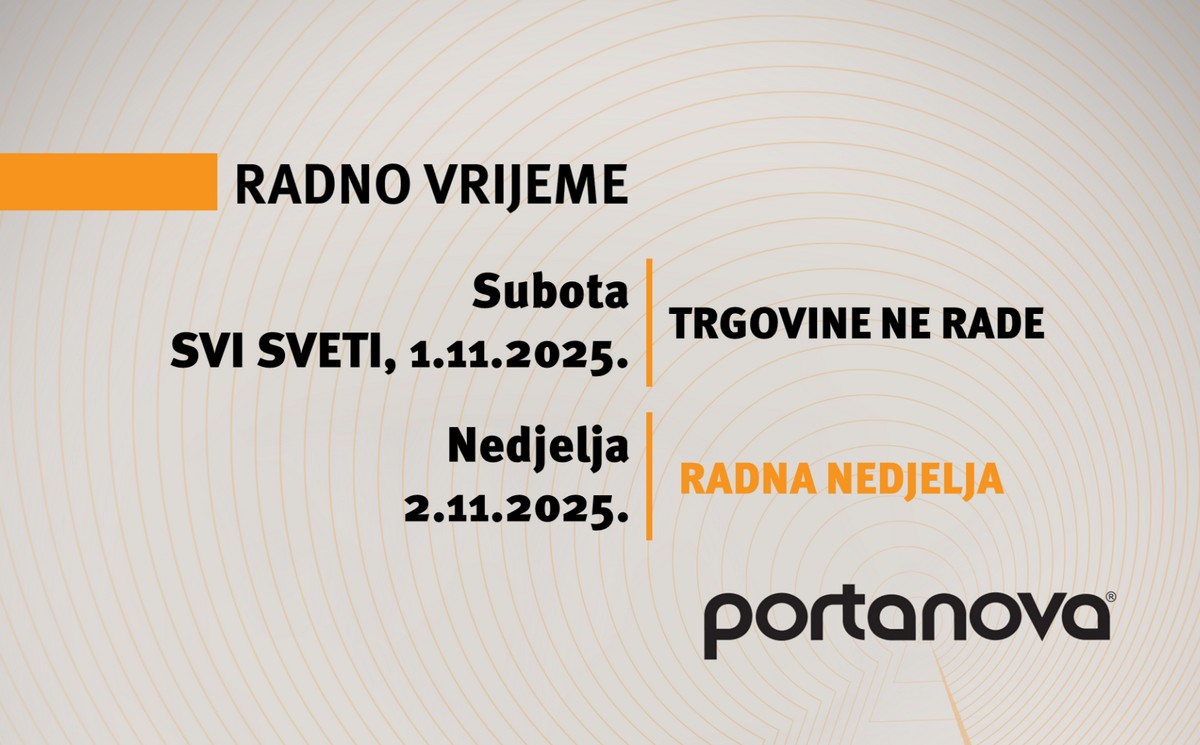 Nedjelja je radna! Na Dan Svih svetih, 1. studenog, trgovine u Portanovi neće raditi, dok će 2. kat raditi prema prilagođenom radnom vremenu. Ali već u nedjelju, 2. studenog, Portanova ponovno otvara svoja vrata – sve trgovine i ugostiteljski prostori radit će prema redovnom rasporedu od 9 do 21 sat.