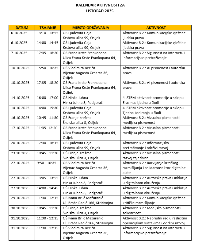 U nastavku se nalazi kalendar planiranih radionica i događanja za mjesec RUJAN u svim partnerskim školama.