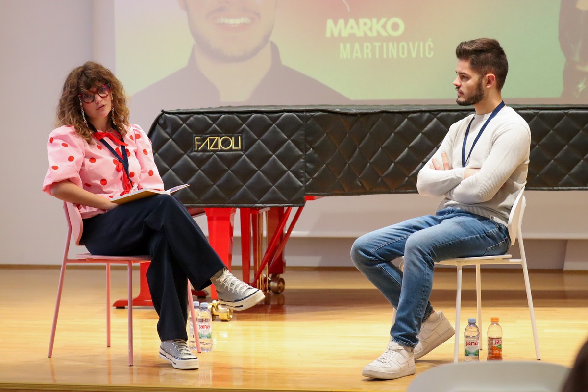 Uslijedio je razgovor „Glazba kao narativ, podcast kao pozornica“, u kojem je Marko Martinović, student Tamburaškog umijeća na Akademiji za umjetnost i kulturu u Osijeku, govorio o spajanju glazbe i digitalnih medija, osobito kroz format podcasta. Osvrnuo se i na svoja dosadašnja profesionalna iskustva u kreativnoj industriji, među kojima se ističe sudjelovanje na Euroviziji mladih glazbenika 2016. godine, kada je predstavljao Hrvatsku. Razgovor je moderirala još jedna bivša studentica Odsjeka za kulturu, medije i menadžment Tea Tonković.