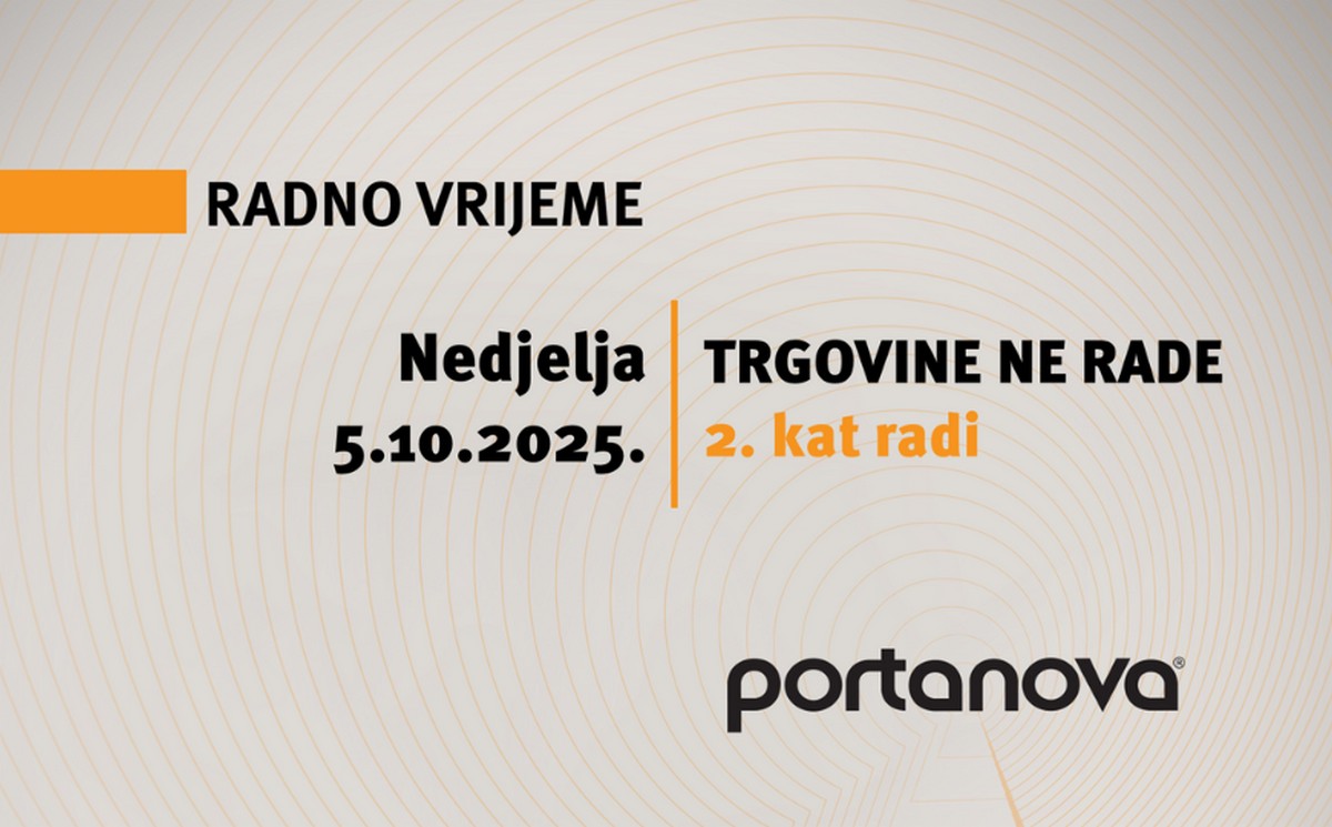 Radno vrijeme u nedjelju. A nakon uzbudljivog tjedna, zabava u Portanovi se nastavlja – ali samo na 2. katu, jer trgovine ovu nedjelju, 5. listopada neće raditi! Trgovine u Portanovi neće raditi niti jednu nedjelju u listopadu, ali 2. kat radi prema prilagođenom radnom vremenu koje možete provjeriti OVDJE. https://portanova.hr/hr/vijesti/2417-radno-vrijeme-u-listopadu