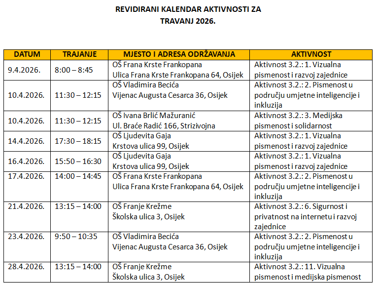 Predstavljamo revidirani kalendar aktivnosti koje u mjesecu travnju provodimo kroz projekt “STEMpo – Ritam zajednice: Digitalne kompetencije za humani razvoj“.