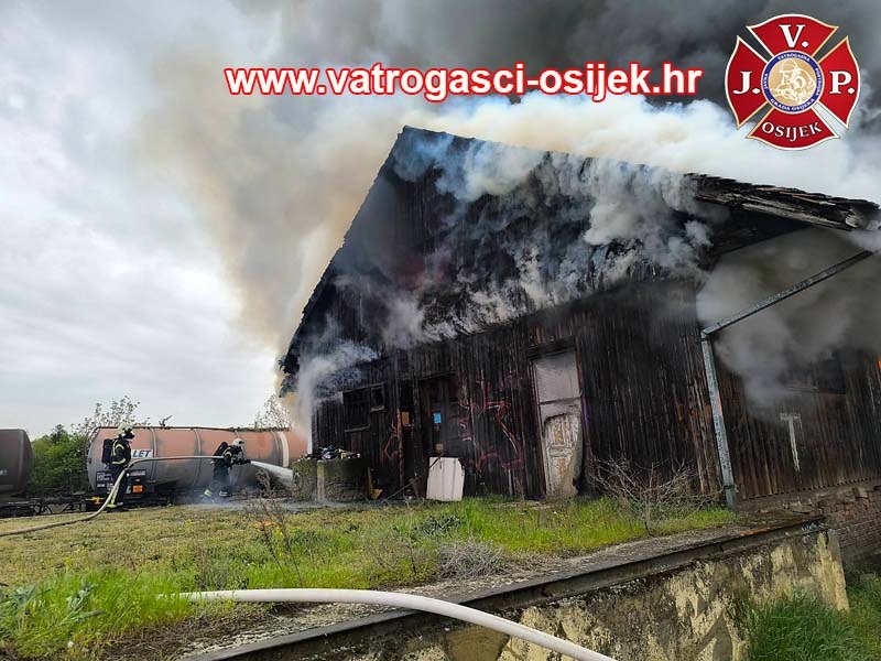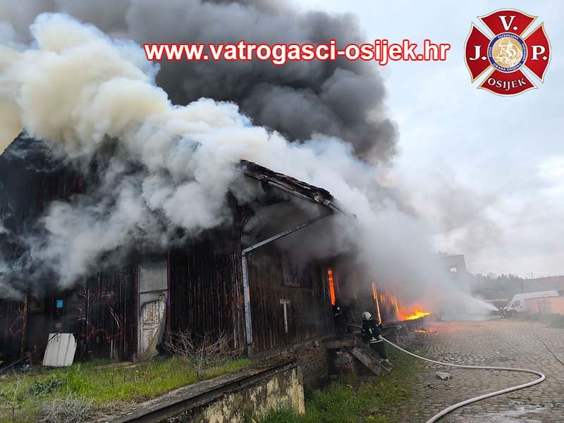 Jučer u poslijepodnevnim satima došlo je do požara napuštenog drvenog skladišta Hrvatske Željeznice u Osijeku, u Donjem gradu, u Tvorničkoj ulici.