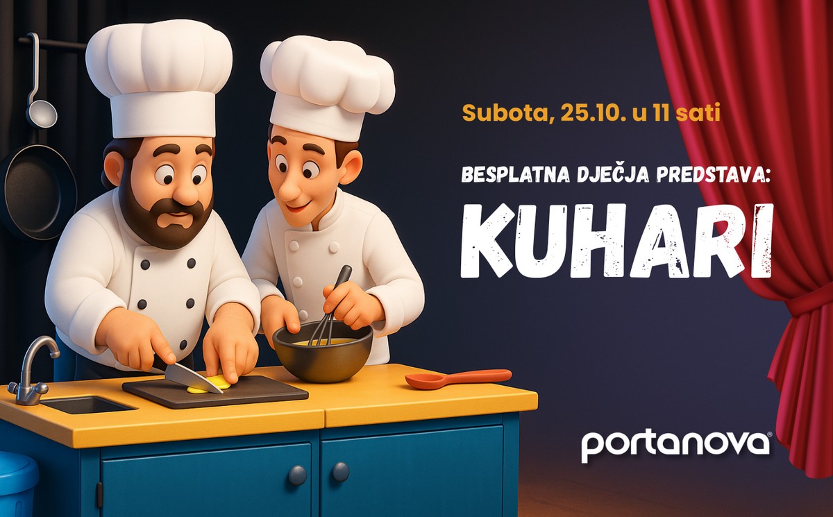 Besplatna dječja predstava „Kuhari“ – subota u 11 sati. Smijeh, zabava i puno dobre energije – sve to donosi besplatna dječja predstava „Kuhari“ teatra TO GO, koja se održava u subotu, 25. listopada u 11 sati, na 1. katu ispred Müllera.